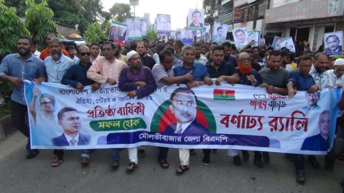 বৃহস্পতিবার (১ সেপ্টেম্বর) বিকেলে বিএনপি’র প্রতিষ্ঠা বার্ষিকী উপলক্ষে শহরের কুসুমবাগ এলাকার সিলেট রোড থেকে শোভাযাত্রাটি বের করে এম সাইফুর রহমান রোড হয়ে প্রধান প্রধান সড়ক প্রদক্ষিণ শেষে শহীদ মিনারে এসে শেষ হয়।