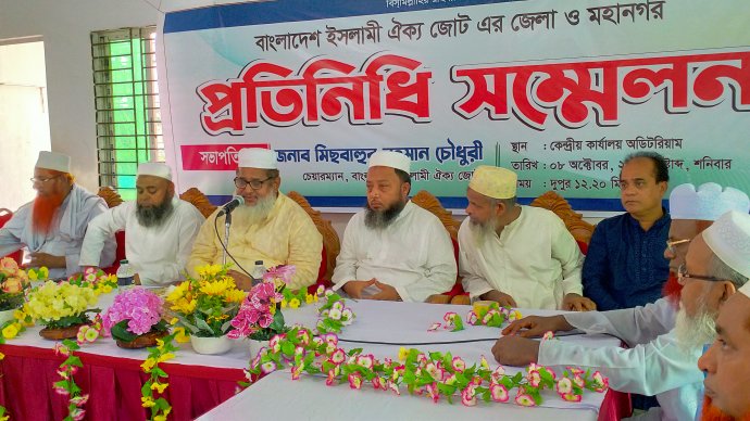 শনিবার বাংলাদেশ ইসলামী ঐক্য জোটের উদ্যোগে জেলা ও মহানগর প্রতিনিধি সম্মেলনে সভাপতির বক্তব্যে দলের চেয়ারম্যান আলহাজ মিছবাহুর রহমান চৌধুরী এসব কথা বলেন। রাজধানীর মুগদা মদীনাবাগ ওয়াসা রোডস্থ দলের কেন্দ্রীয় মিলনায়তনে অনুষ্ঠিত প্রতিনিধি সম্মেলনে অন্যান্যের মধ্যে বক্তব্য রাখেন, দলের সিনিয়র ভাইস চেয়ারম্যান আল্লামা রুহুল আমিন খান, ভাইস চেয়ারম্যান জামাল উদ্দিন, মহাসচিব শাইখুল হাদীস মনিরুজ্জামান রব্বানী, যুগ্ম মহাসচিব মাওলানা ইউসুফ সিদ্দিকী, জুলকার নাঈন (ডালিম), মাওলানা আবু হানিফ,আসাদ উল্লাহ, মাওলানা নূরুল আমিন ও ছাত্র বিষয়ক সম্পাদক আমজাদ হোসেন।