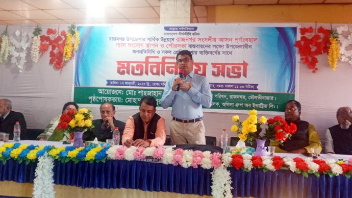 রাজনগর উপজেলার সার্বিক উন্নয়নে রাজনগর সংসদীয় আসন পূর্নঃবহাল,গ্যাস সংযোগ স্থাপনা ও পৌরসভা বাস্তবায়নের লক্ষ্যে উপজেলাধীন জনপ্রতিনিধি ও সকল শ্রেণি পেশার ব্যক্তিবর্গের সাথে মতবিনিময় সভা অনুষ্টিত হয়েছে।