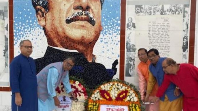 শুক্রবার ( ১৭ মার্চ) সকালে মৌলভীবাজার সরকারি উচ্চ বিদ্যালয় মাঠ প্রাঙ্গণে বঙ্গবন্ধুর ম্যুরালে পুস্পস্তবক অর্পন করে শ্রদ্ধা নিবেদন করেছেন জেলা আওয়ামী লীগ সভাপতি ও মৌলভীবাজার-৩ আসনের সংসদ সদস্য নেছার আহমদ এমপি,জেলা প্রশাসক মীর নাহিদ আহসান, জেলা পরিষদ চেয়ারম্যান ও জেলা আওয়ামী লীগ সাধারণ সম্পাদক মিছবাহুর রহমান,পুলিশ সুপার মোহাম্মদ জাকারিয়া, পৌর মেয়র ও জেলা আওয়ামী লীগ যুগ্ম সাধারণ সম্পাদক ফজলুর রহমান, সদর উপজেলা চেয়ারম্যান ও জেলা আওয়ামী লীগ যুগ্ম সাধারণ সম্পাদক কামাল হোসেন প্রমুখ।
