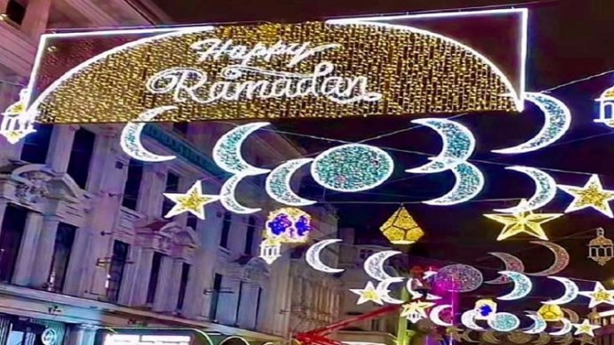 পশ্চিম লন্ডনের লিসেস্টার স্কয়ারের সাথে পিকাডিলির সংযোগস্থল কভেন্ট্রি স্ট্রিটে গেলে দেখা যাচ্ছে, মাথার ওপর উজ্জ্বল আলোয় জ্বলজ্বল করছে ‘হ্যাপি রামাদান’ (শুভ রমজান) লেখা।