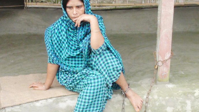 পঞ্চগড় সদর উপজেলায় করসিনা আক্তার (৩৪) নামে দুই সন্তানের জননীকে আট বছর ধরে পায়ে শিকল দিয়ে বেঁধে রাখা হয়েছে। মাথায় সমস্যা আছে এমন অভিযোগে শিকলবন্দি জীবন তার।