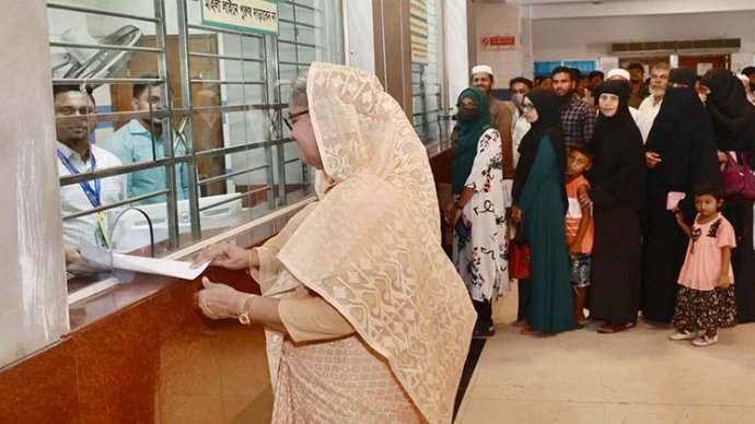 জাতীয় চক্ষুবিজ্ঞান ইনস্টিটিউট ও হাসপাতালে ১০ টাকার আউটডোর টিকিট কিনে সাধারণ রোগীর মতো চোখ পরীক্ষা করিয়েছেন প্রধানমন্ত্রী শেখ হাসিনা।