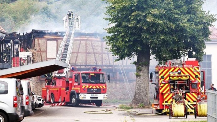প্যারিস থেকে প্রায় ৩১৫ মাইল পূর্বে জার্মান সীমান্তের কাছে একটি ছোট শহর উইন্টজেনহেইমেও ওই বাড়িতে স্থানীয় সময় সকাল ৬:৩০ মিনিটের দিকে আগুন ছড়িয়ে পড়ে। হাউট রাইনের প্রিফেকচার, যেখানে উইন্টজেনহেইম অবস্থিত, বলেছে ‘ভয়ঙ্কর অগ্নিশিখা’ ৫০০ বর্গ মিটার (৫,৪০০ বর্গফুট) কাঠামোর প্রায় ৩০০ বর্গমিটার (৩,২০০ বর্গফুট) গ্রাস করেছে।