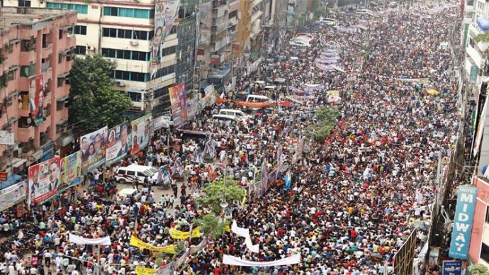 শনিবার নয়াপল্টনে দলের কেন্দ্রীয় কার্যালয়ের সামনে এক দফা দাবি আদায়ে গণমিছিল শেষে সংক্ষিপ্ত সমাবেশে তিনি এসব কথা বলেন। এরআগে সরকারের পদত্যাগ, নির্বাচনকালীন নির্দলীয় নিরপেক্ষ তত্ত্বাবধায়ক সরকার ও খালেদা জিয়ার মুক্তিসহ এক দফার যুগপৎ আন্দোলনের অংশ হিসেবে রামপুরা এবং কমলাপুর থেকে দুইটি গণিমিছিল বিভিন্ন সড়ক প্রদক্ষিণ করে নয়াপল্টনে এসে শেষ হয়। রামপুরা থেকে ঢাকা মহানগর উত্তর বিএনপির নেতাকর্মীরা এবং কমলাপুর থেকে ঢাকা মহানগর দক্ষিণের নেতাকর্মীরা গণমিছিল নিয়ে সেখানে আসেন। উত্তরের মিছিলটি রামপুরা বেটার লাইফ হাসপাতালের সামনে থেকে শুরু হয়ে আবুল হোটেল-মালিবাগ রেলগেট-মৌচাক- মালিবাগ মোড়-শান্তিনগর- কাকরাইল মোড়-নাইটিঙ্গেল মোড় হয়ে নয়াপল্টনস্থ দলের কেন্দ্রীয় কার্যালয়ের সামনে গিয়ে শেষ হয়। অন্যদিকে দক্ষিণ বিএনপির গণমিছিল কমলাপুর থেকে শুরু হয়ে পীরজঙ্গি মাজার-আরামবাগ- ফকিরাপুল মোড় হয়ে নয়াপল্টনে দলীয় কার্যালয়ের সামনে গিয়ে সমাপ্ত হয়। মিছিল দুটিই বিকেল ৪টায় শুরু হওয়ার কথা থাকলেও বেলা দুইটার আগে থেকেই নেতাকর্মীরা বিভিন্ন ইউনিটের ব্যানারে খ- খ- মিছিল নিয়ে জড়ো হতে থাকেন। এসময় তারা সরকারের পদত্যাগের দাবিতে বিভিন্ন স্লোগান দিতে থাকেন। পরে দুটি মিছিলই নয়াপল্টন অভিমূখে রওয়ানা হয়। মিছিল দুটি নয়াপল্টনে এসে পৌঁছালে নয়াপল্টন এলাকা হাজার হাজার নেতাকর্মীর উপস্থিতিতে লোকে লোকারণ্য হয়ে পড়ে। এসময় বৃষ্টি শুরু হলেও নেতাকর্মীরা বৃষ্টি উপেক্ষা করেই শীর্ষ নেতাদের বক্তব্য শুনেন।