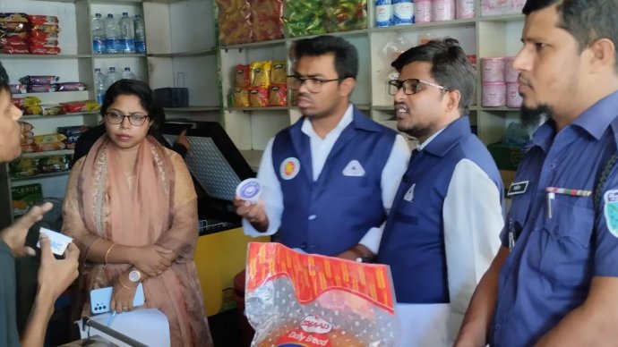 উপজেলা নির্বাহী অফিসার ও নির্বাহী ম্যাজিস্ট্রেট ফারজানা আক্তার মিতার নেতৃত্বে এই অভিযান চালায় তারা। এসময় বিএসটিআই হতে মোড়কজাতকরণ নিবন্ধন সনদ গ্রহণ ব্যতিরেকে ব্ল্যাক টি পণ্য বিক্রয় ও বিতরণ করার অপরাধে মেসার্স শিব শক্তি স্টোরে ৫ হাজার টাকা এবং বিএসটিআই হতে মোড়কজাতকরণ নিবন্ধন সনদ গ্রহণ ব্যতিরেকে ফার্মেন্টেড মিল্ক (মিষ্টি দই) পণ্য বিক্রয় ও বিতরণ করার অপরাধে মেসার্স মাহিন এন্টারপ্রাইজে ২ হাজার টাকা মাত্র জরিমানা করা হয়।