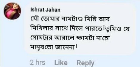 মৌ জানান, গতকাল রাতে ছদ্মনামে ফেসবুক একাউন্ট থেকে তাঁর বিরুদ্ধে বাজে মন্তব্য করা হয়। ইসরাত জাহান নামের একটি ফেসবুক আইডি থেকে কমেন্টে মৌ’কে আজেবাজে মন্তব্য করা হয়। তিনি বলেন, গতকাল আমি আদালতে স্বাক্ষি দেয়ার পরই এমন মন্তব্য শুরু হয়। ওই একাউন্ট থেকে একটি খবরের নিচে কমেন্টে আপত্তিকর মন্তব্য করা হয়। মৌ’ ধারণা, জামিনে থাকা আসামীদের কেউ এসব করছে, অথবা খুনিদের স্বজনরা এমন কাজে জড়িত।