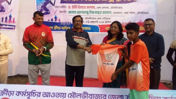 অ্যাথলেটিকস প্রশিক্ষণ জন্য প্রশিক্ষণার্থীদের মাঝে জেলা ক্রীড়া অফিস কর্তৃক ক্রীড়া সামগ্রী ও জার্সি বিতরণ করা হয়।