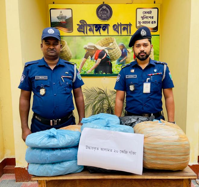 শ্রীমঙ্গল থানা পুলিশের অভিযানে ২০ কেজি গাঁজা উদ্ধার করা হয়েছে।