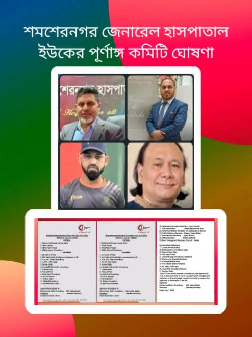 শমশেরনগর জেনারেল হাসপাতাল কমিটির নির্বাহী সভাপতি কণ্ঠশিল্পী সেলিম চৌধুরী বিদায়ী আহবায়ক কমিটিকে তাদের সাফল কর্মকান্ডের জন্য ধন্যবাদ জানান এবং নবগঠিত কমিটিও অনুরূপ সাফল্য বয়ে আনবে এ আশা প্রকাশ করে বলেন, আগামী ১লা জানুয়ারি ২০২৫ইং নতুন কমিটি দায়িত্ব গ্রহণ করার সাথে সাথে আহবায়ক কমিটি বিলুপ্ত হবে। নতুন কমিটির মাধ্যমে বৃটেনে শমশেরনগর জেনারেল হাসপাতালের কার্যক্রম আরও বেগবান হবে। বৃটেনে হাসপাতালের উদ্দেশ্যগুলি সম্পাদনের জন্য শমশেরনগর জেনারেল হাসপাতাল কমিটির নীতি ও নির্দেশিকা অনুসারে সহযোগী কমিটি হিসাবে কাজ করার অনুমোদন দেওয়া হয়েছে।