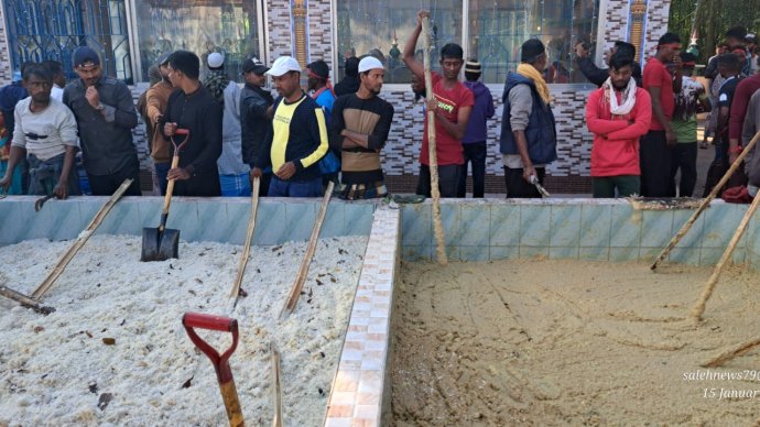 বুধবার (১৫ জানুয়ারি) সরজমিন গিয়ে দেখা যায়, সকাল থেকেই মাজারে হাজার হাজার নারী-পুরুষ ছোট বড় হাঁড়ি-পাতিল ভর্তি সাদাভাত আর ক্ষীর নিয়ে ছুটে আসছেন। মাজার সংলগ্ন বিশাল বড় দু’টি স্থায়ী পাকা পাত্রে শিরণী সংগ্রহ করা হচ্ছে। শিরণী মিশ্রণে ব্যস্ত স্বেচ্ছাসেবকরা। সেই সকাল থেকে শুরু হয়ে আসরের নামাজের পূর্বমুহুর্ত পর্যন্ত এসে সংগ্রহকৃত শিরণী শতাধিক স্বেচ্ছাসেবকরা বড় বড় গামলায় (বউল) নিয়ে মাজার সংলগ্ন বিশাল মাঠে অপেক্ষমান মানুষের মাঝে বিতরণ করেন।