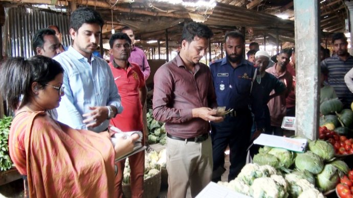 বাজার মনিটরিংকালে টিমের সদস্যরা বাজারের খুচরা ও পাইকারি বিক্রেতাদের সাথে কথা বলেন এবং বিভিন্ন দোকানে পণ্যের দাম, মান, মূল্য তালিকা প্রদর্শন ও পণ্যের সরবরাহ, পরিষ্কার পরিচ্ছন্নতা ইত্যাদি পর্যবেক্ষণ করেন। অভিযানে সহযোগিতা করে জেলা পুলিশ।