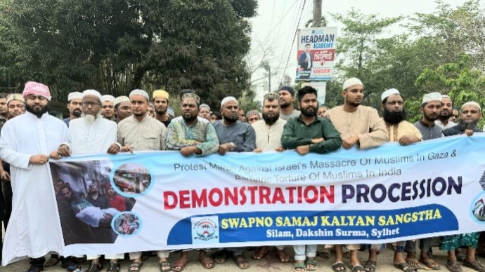 সিলেটের দক্ষিণ সুরমা উপজেলার সিলামে ইহুদিবাদী রাষ্ট্র ইসরাইল কর্তৃক ফিলিস্তিনে নির্বিচারে বোমা হামলা ও নিরীহ ফিলিস্তিনিদের হত্যার প্রতিবাদে ভিক্ষোভ মিছিল ও প্রতিবাদ সভা অনুষ্ঠিত হয়েছে।