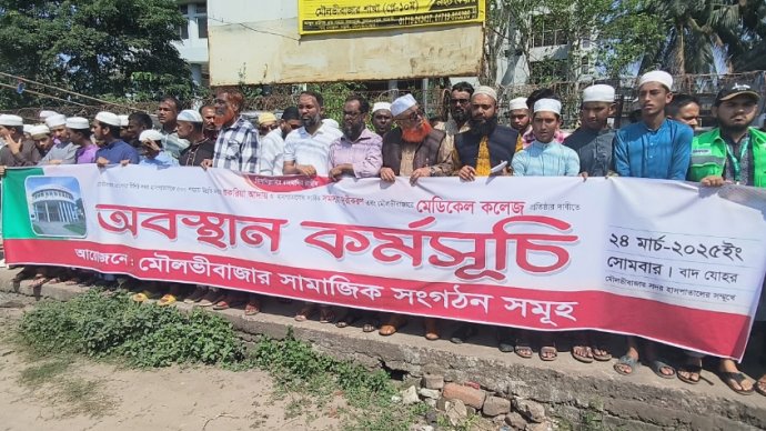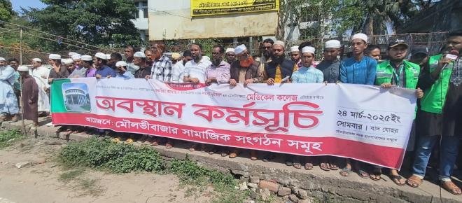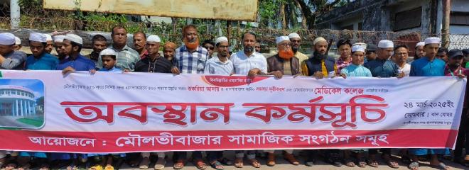 মৌলভীবাজার, ২৪ মার্চ ২০২৫: মৌলভীবাজার সদর হাসপাতালকে ২৫০ শয্যা থেকে ৫০০ শয্যায় উন্নীত করার জন্য সরকারকে ধন্যবাদ জানানো এবং হাসপাতালের সার্বিক সমস্যা দূরীকরণসহ মৌলভীবাজারে একটি মেডিকেল কলেজ প্রতিষ্ঠার দাবিতে এক অবস্থান কর্মসূচির আয়োজন করা হয়।